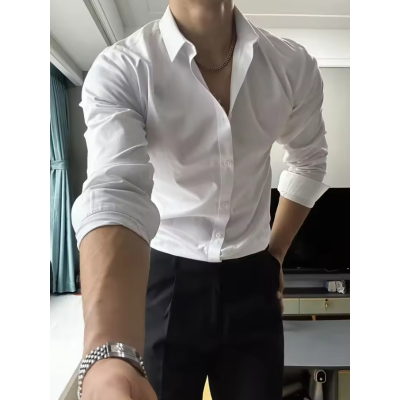 MERIDIANA Men’s White Long-Sleeve Business Shirt – Easy-Iron Dress Shirt with Structured Collar and Professional Finish